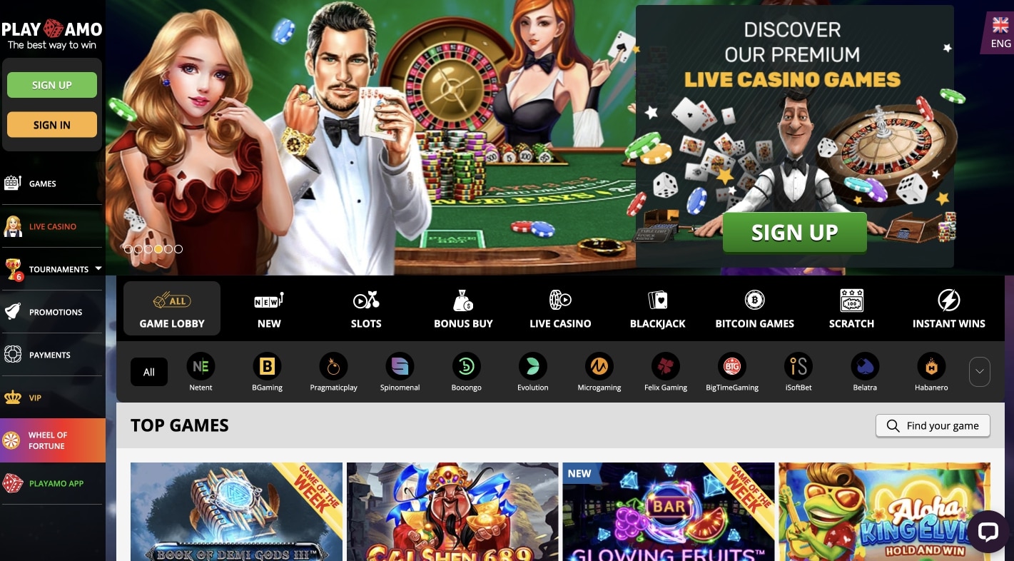 Playamo Casino scores with more advantages than disadvantages. The large assortment of games with about 1,400 slots includes an opportunity for every player to win. The fans of cryptocurrencies also get their money’s worth, so to speak, because the casino accepts cryptocurrencies in addition to the conventional payment providers. Many players are convinced by the Live Casino, where the legendary game developer Evolution Gaming is in charge. Live dealers play with you in the live casino. Baccarat games and the like are absolute highlights, the well-equipped Live Casino is the ultimate for many players, this top provider is first choice.