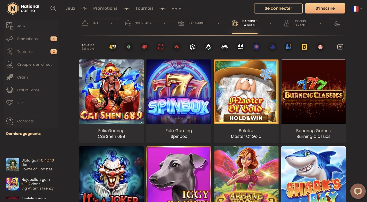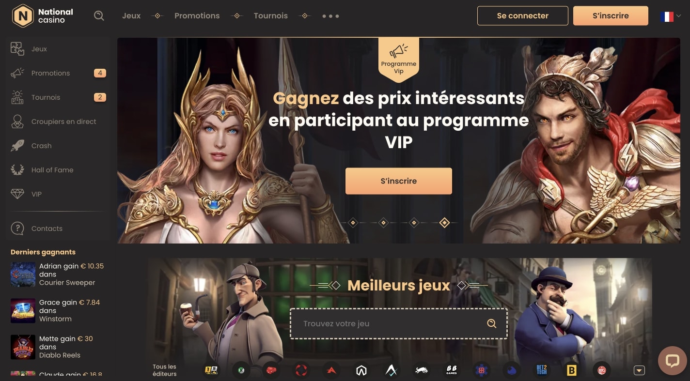 Eh bien, si vous préférez jouer dans un casino en ligne digne de confiance, sans vous soucier de la sécurité de votre argent et de vos données personnelles. Nous vous recommandons d’essayer l’expérience National Casino. Il a un programme de bonus accueillant, un bon support client et une expérience de jeu passionnante, en particulier les jeux de croupier en direct. Les nouveaux joueurs seront ravis de recevoir des fonds supplémentaires pour leur premier et deuxième dépôt, tandis que les recharges régulières donnent assez d’élan pour rester fidèle.