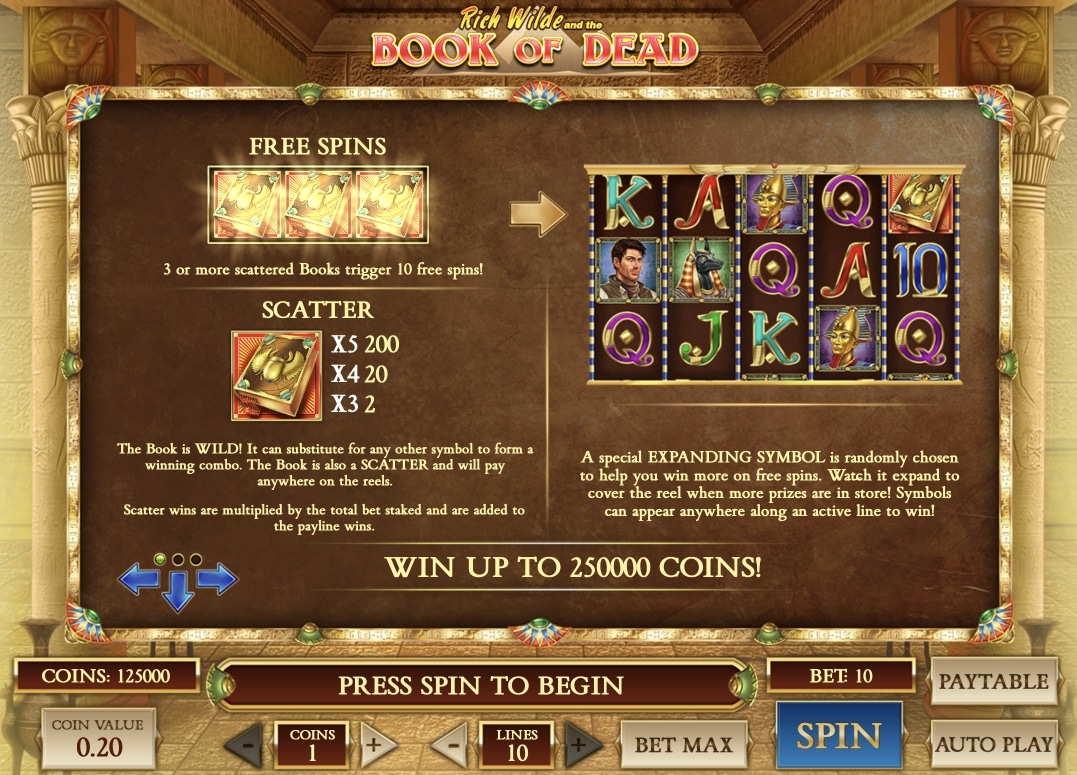 Wenn Spieler sich nach der Anmeldung in einem legalen Schweizer Online Casino für das Spiel Book of Dead entscheiden, sollten Sie die Spielregeln der Spiele verstehen. Hier ist eine kurze Erklärung der Spiele Mechanik:
