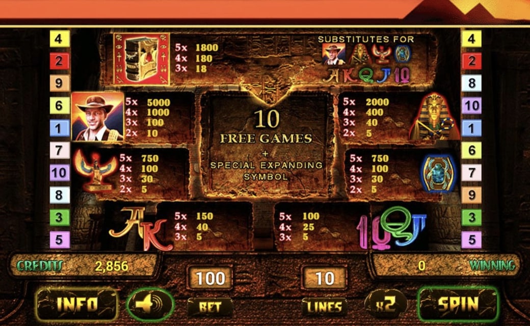 Die Handlung spielt sich in Ägypten ab. Begeben Sie sich ins Tal der Könige. Verlassen Sie sich vollständig auf die Bonussymbole und hoffen Sie, dass mehrere Symbole gleichzeitig erscheinen. Vergessen Sie nie, ein Auge auf das Book zu haben, erscheint es in dreimaliger Ausführung heisst es für Sie Freispiele. Sie können nie schätzen, wann das begehrte Symbol auftaucht, sondern warten ab.