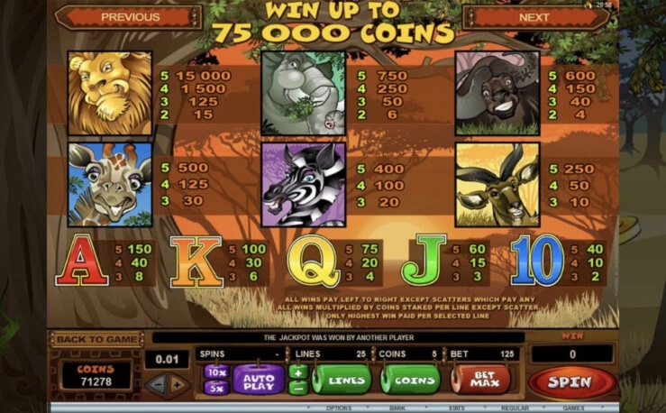 Das Thema ist für viele Gamer interessant. Die Tiersymbole versprechen jeweils einen hohen Gewinn im Mega Moolah Spielautomat. Das Scatter Symbol , der Affe, sorgt für erhöhte Gewinnchancen. Der König, in diesem Falle der Löwe, ist der sagenumwobene Multiplikator Joker und gleichzeitig das stärkste und beliebteste Wild Symbol . Der Affe und der Löwe treten jedoch seltener auf, bringen dafür umso stattlichere Jackpotgewinne. Die Symbole stehen in keinem Zusammenhang zum Progressive Jackpot. Die Jackpots sind fest bei Mega Moolah angesiedelt.