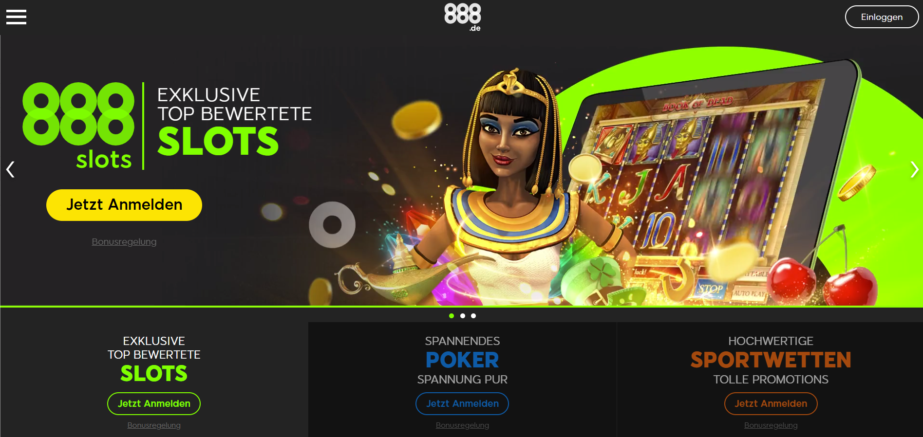 Nicht alle Online Casinos bieten deren Kunden einen Bonus ohne Einzahlung zu erhalten. Doch 888 Casino bietet tatsächlich eine solche Möglichkeit für seine Spieler . Allein das drückt schon aus, dass es sich hier um eine großzügige Anzahl von Bonus Angeboten handelt. Nehmen wir jetzt die einzelnen Boni zum Hande und betrachten wir Sie: