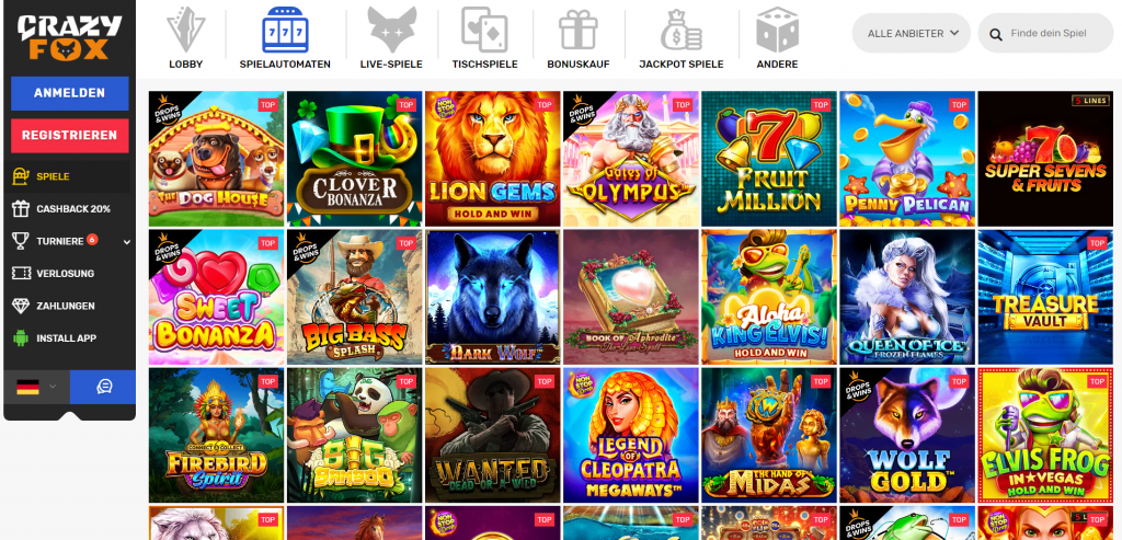 Im Crazy Fox Casino finden Sie eine beeindruckende Auswahl von über 2000 Spielautomaten . Diese umfangreiche Sammlung bietet eine Vielzahl von spannenden Optionen, die von 25 vertrauenswürdigen Anbietern bereitgestellt werden. Die Spielautomaten in diesem Casino zeichnen sich durch durchschnittliche RTP-Werte von 95-97% aus , was für Spieler eine faire Chance auf Gewinne bedeutet. Mit so vielen Optionen zur Auswahl und einer solch hohen durchschnittlichen Rückzahlungsrate können Sie sicher sein, dass Sie bei Crazy Fox ein unterhaltsames und fesselndes Spielerlebnis genießen werden, während Sie die Walzen drehen und auf Ihre Glückssträhne hoffen.Diese Top Slots finden Spieler Crazy Fox: