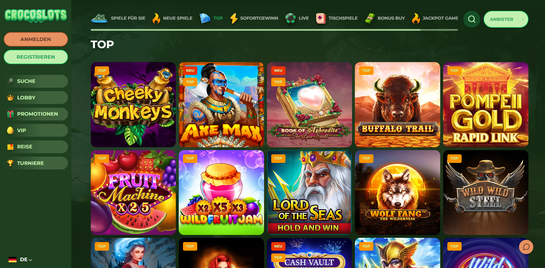 Die Liste der Spielkategorien im CrocoSlots Casino umfassen: