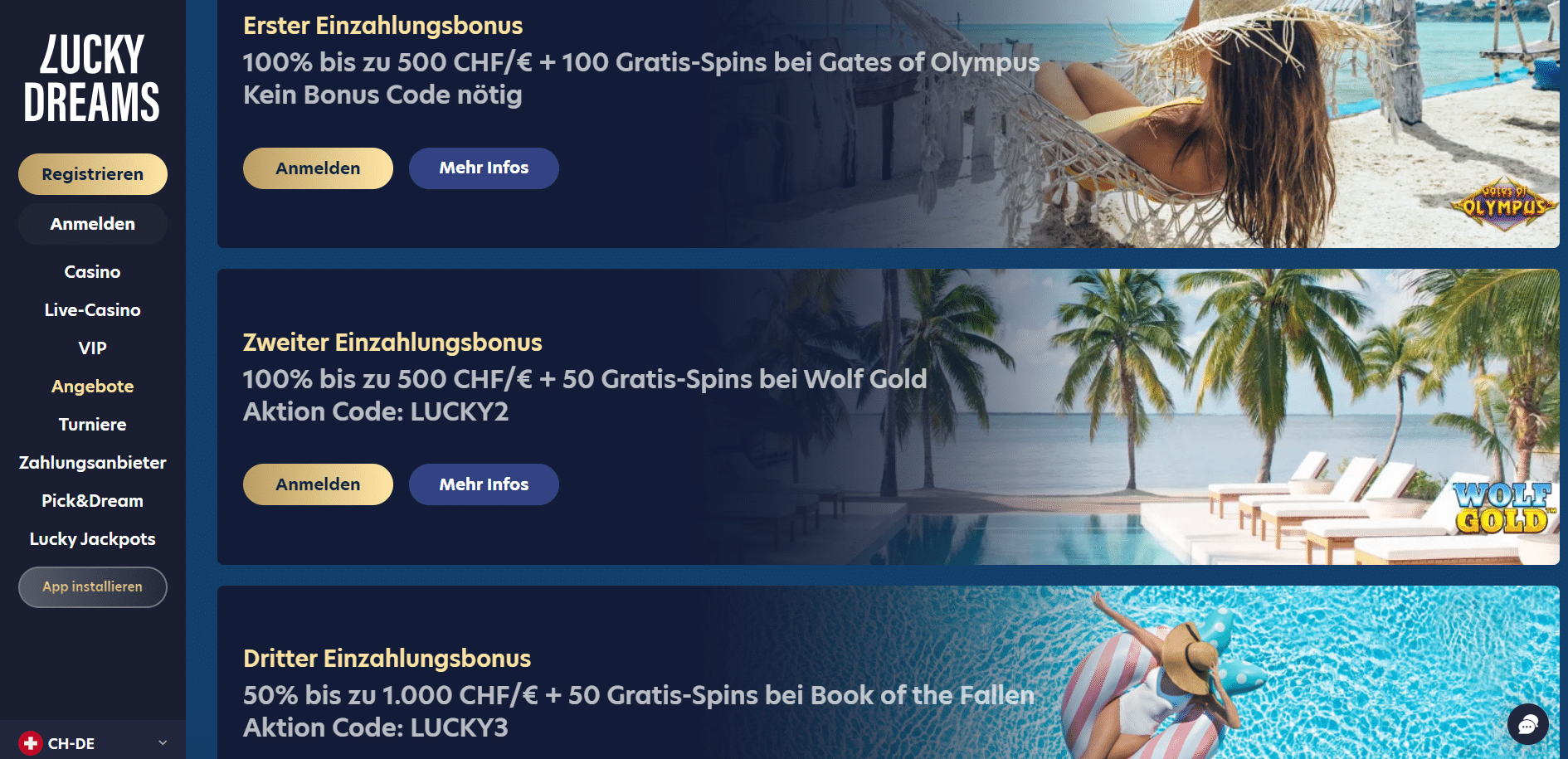 In diesem Artikel präsentieren wir Ihnen unsere detaillierten Lucky Dreams Casino Erfahrungen für die Schweiz im Jahr 2024. Wir wollen Ihnen einen umfassenden Überblick über die Einzigartigkeit dieses Online-Casinos geben, von seinen exzellenten Bonusangeboten über die umfangreiche Spielauswahl bis hin zu den speziellen Features und Dienstleistungen. Bleiben Sie dran, denn wir werden alle Aspekte des Lucky Dreams Casino erforschen, um Ihnen dabei zu helfen, eine fundierte Entscheidung zu treffen.