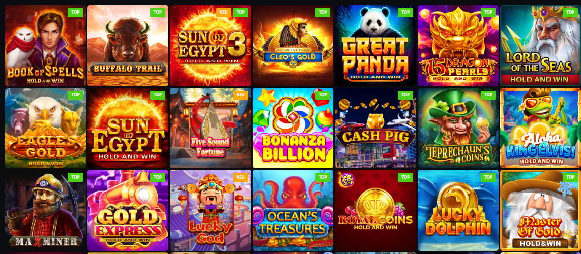 Eine solide Auswahl. Wir vermissen ein ganz klein wenig die Klassiker, wie Sweet Bonanza von Pragmatic Play oder Starburst von Netent. Dennoch, eine sehr hochklassige Selektion .