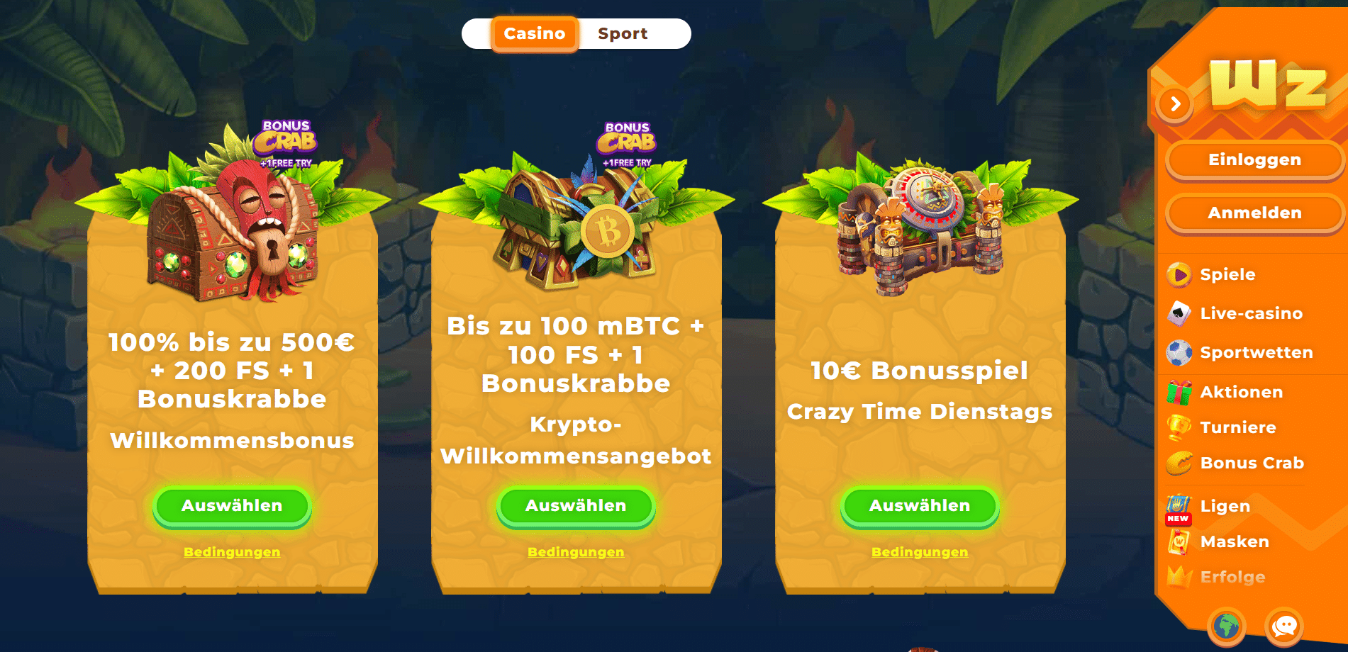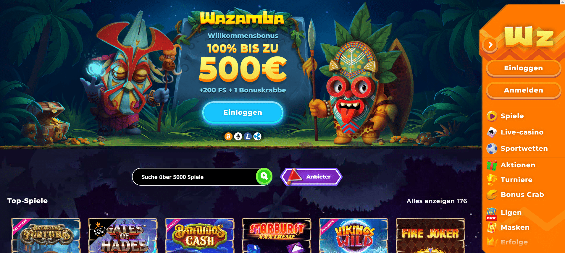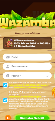 Mit dem Wazamba Casino Willkommensbonus kann sich jeder neue Spieler einen Einzahlungsbonus von 100% bis zu 500€, und obendrauf noch 200 Freispiele sichern. Außerdem erhält man einen Pick bei der Bonuskrabbe.